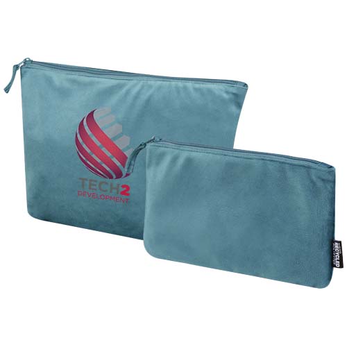 Set van 2 toilettassen gemaakt van GRS-gecertificeerd gerecycled fluwelen polyester. De set bestaat uit een grote en een kleine etui voor georganiseerd opbergen. Lichtgewicht, duurzaam en gemakkelijk in te pakken. Grote etui is 32 x 21 cm, kleine etui is 23 x 13 cm.